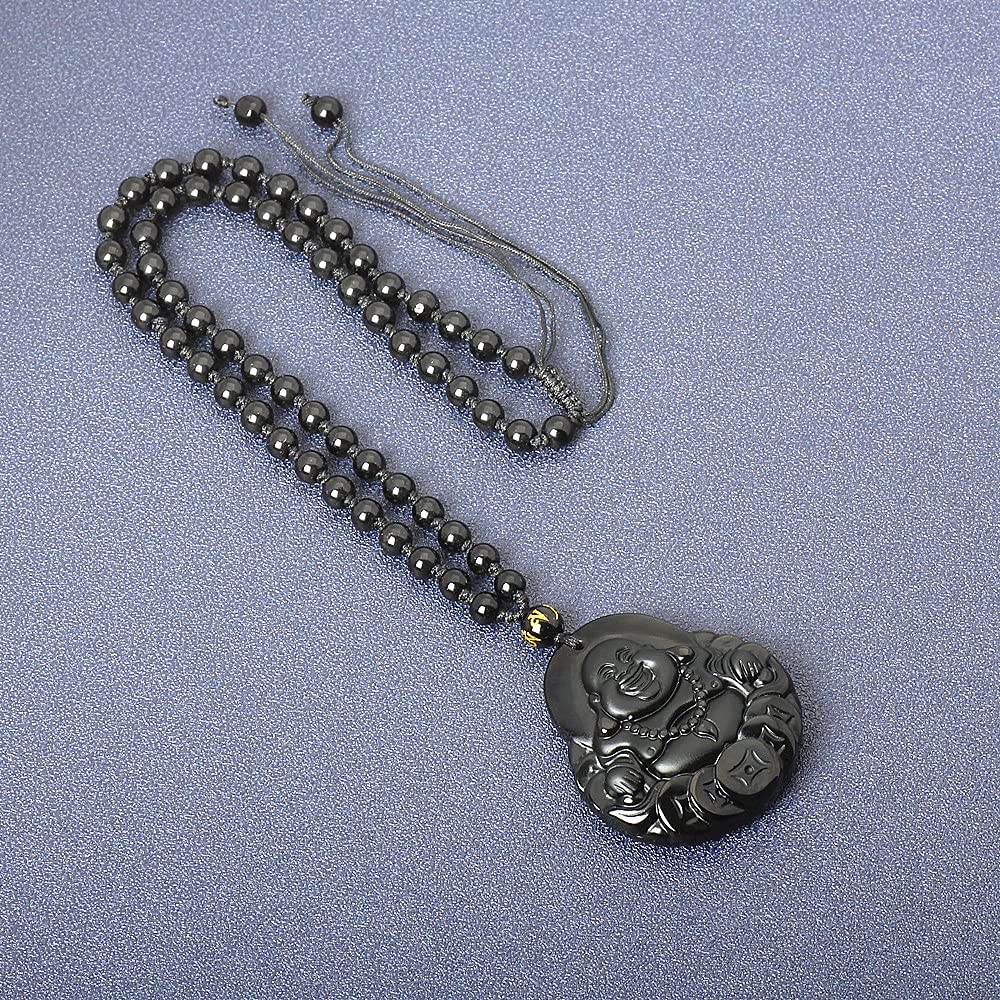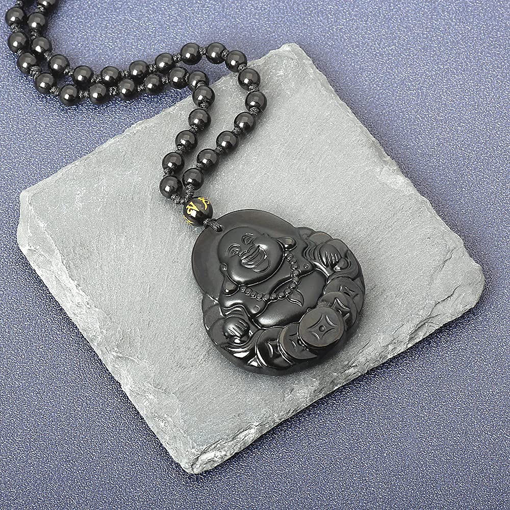 - MATERIAL: The black buddha pendant is made of 100% natural obsidian, so each pendant is unique one. Each piece of obsidian jewelry is exquisitely crafted and polished by our most skilled masters